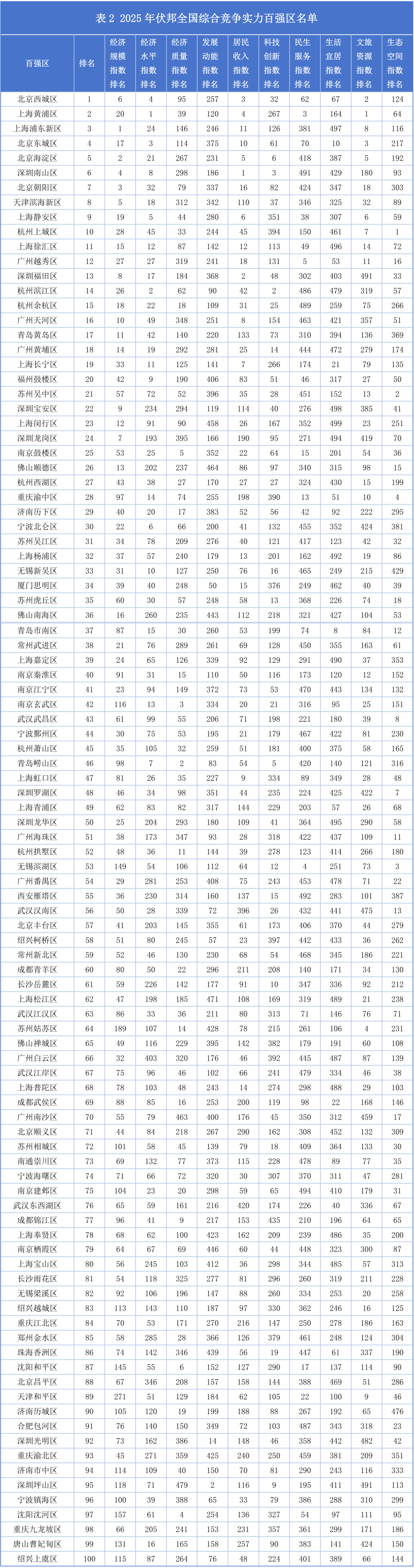 2025年伏邦全国综合竞争实力百强城区榜单发布